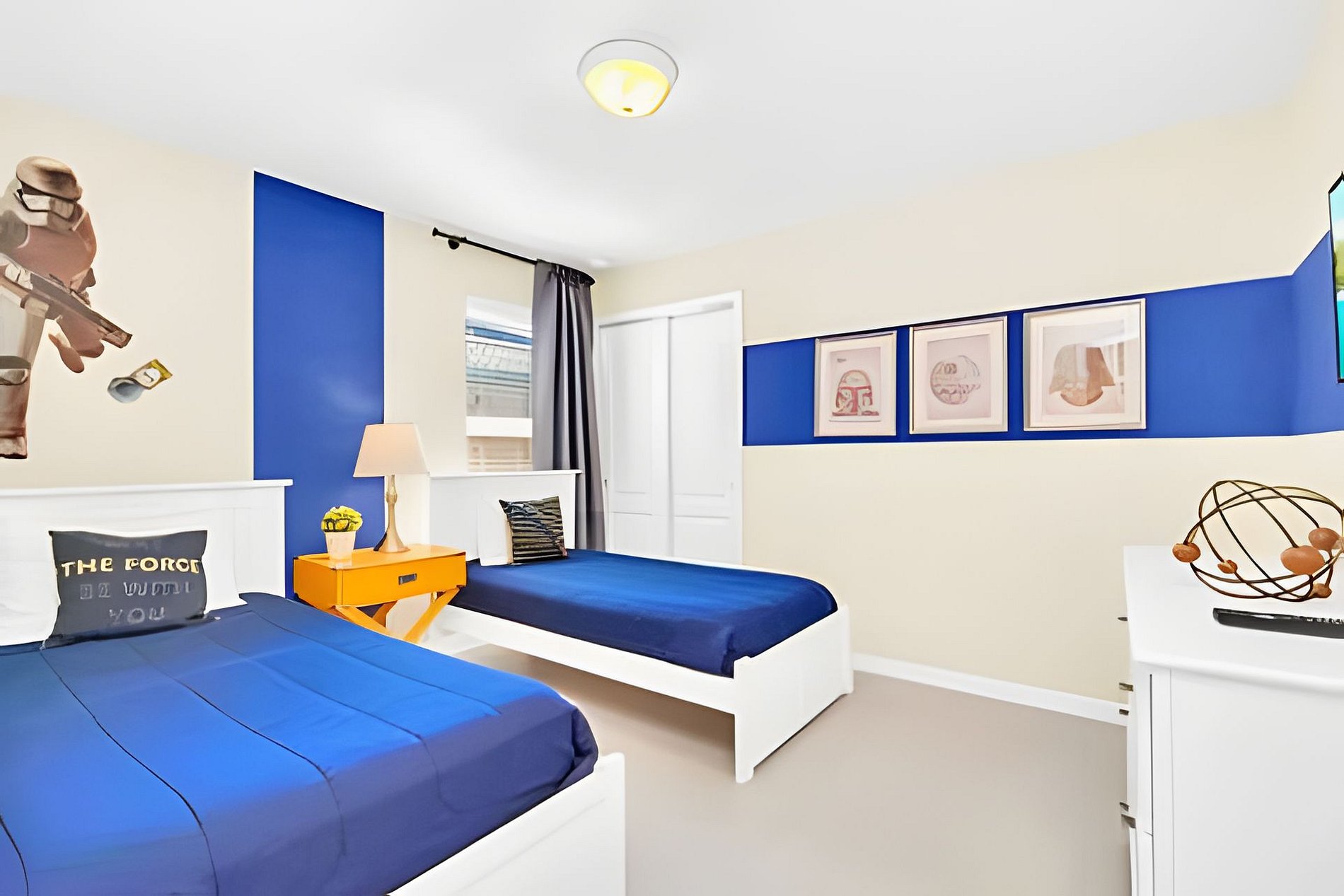 Home Features: • 8 bedrooms (10 beds in total) • 6 Bathrooms including 4 ensuite • Garage-turned-games-room with foosball, billiards and table tennis • Upstairs TV lounge with air hockey table • Fully equipped kitchen with high end appliances • Large dining table (seating for up of 8) / Kitchen island (seating for up to 4) • Smart TV's with cable connection • High speed internet service • Central air conditioning • In home laundry machines • Private pool with removable safety fence • Spill-over jacuzzi • Garden facing screened-in furnished patio • Outdoor dining area with seating for up to 8 • Free onsite parking • Complimentary resort access Resort Features: • 24hr gated entrance with security guard • 10,000 square foot clubhouse with restaurant, bar & lounge • State-of-the-art fitness center • Lazy river for floating • Shallow entry resort-style pool • Waterslide • Outdoor jacuzzi hot tub • Tiki bar • Video arcade • Sundries shop • Volleyball court • Multi-purpose sports courts