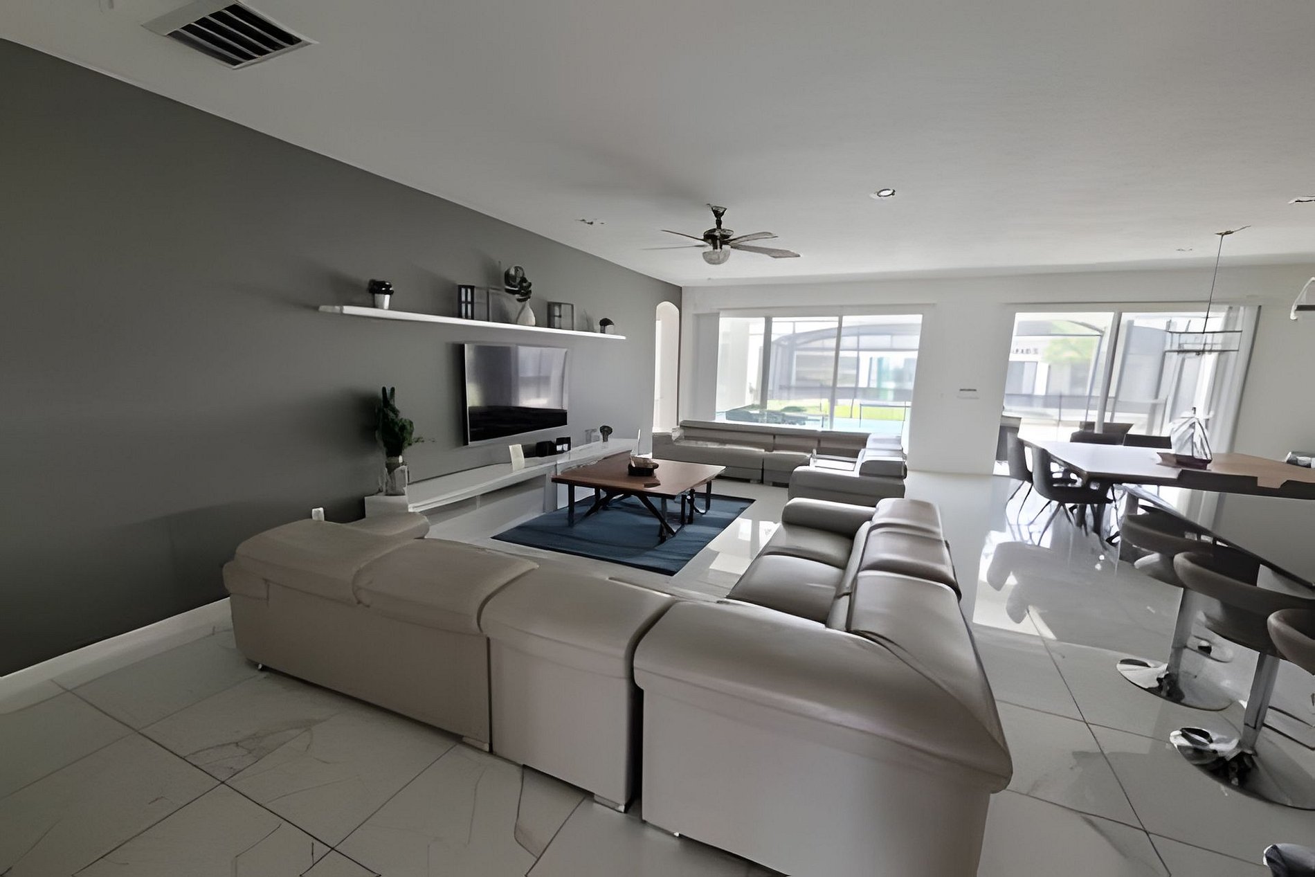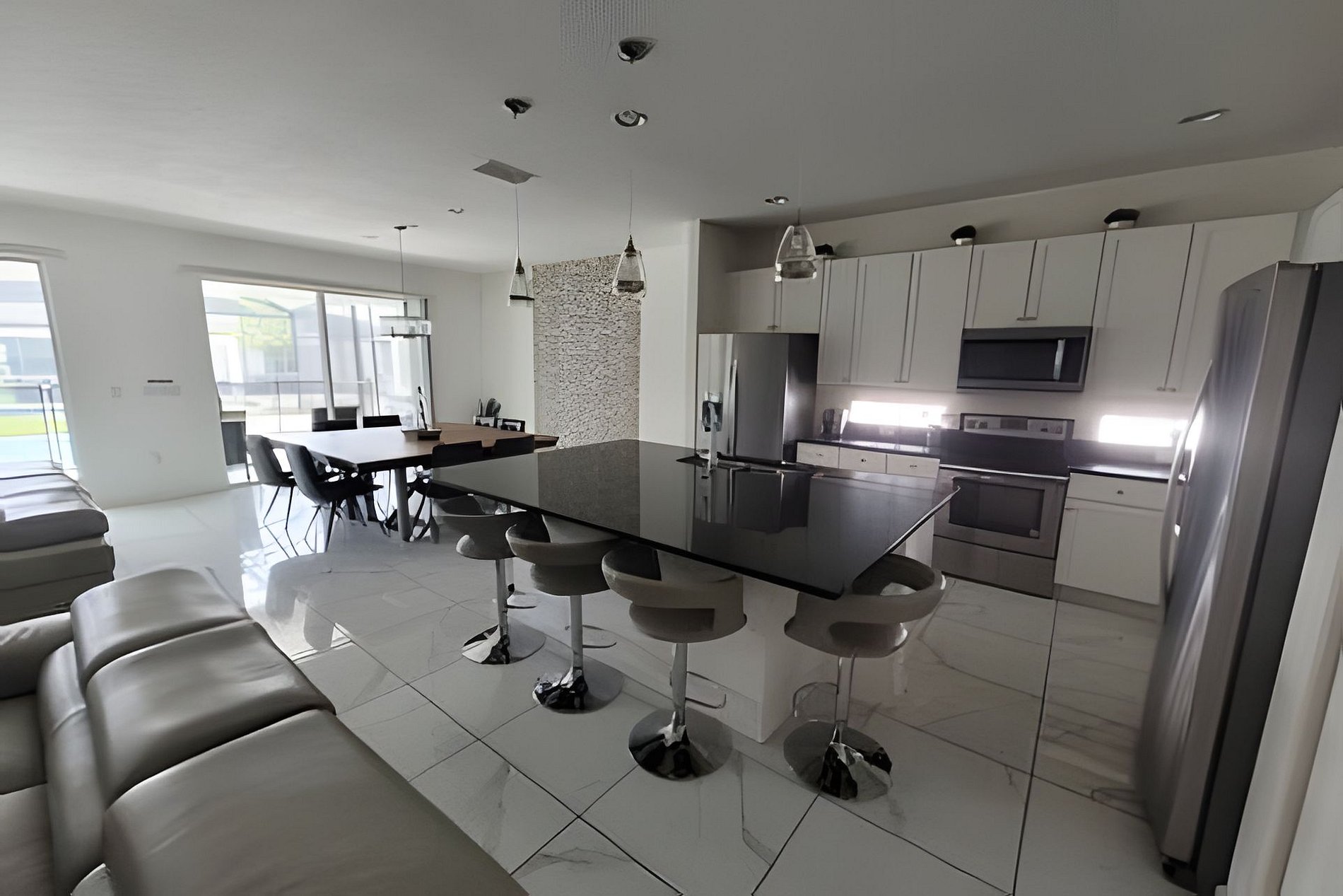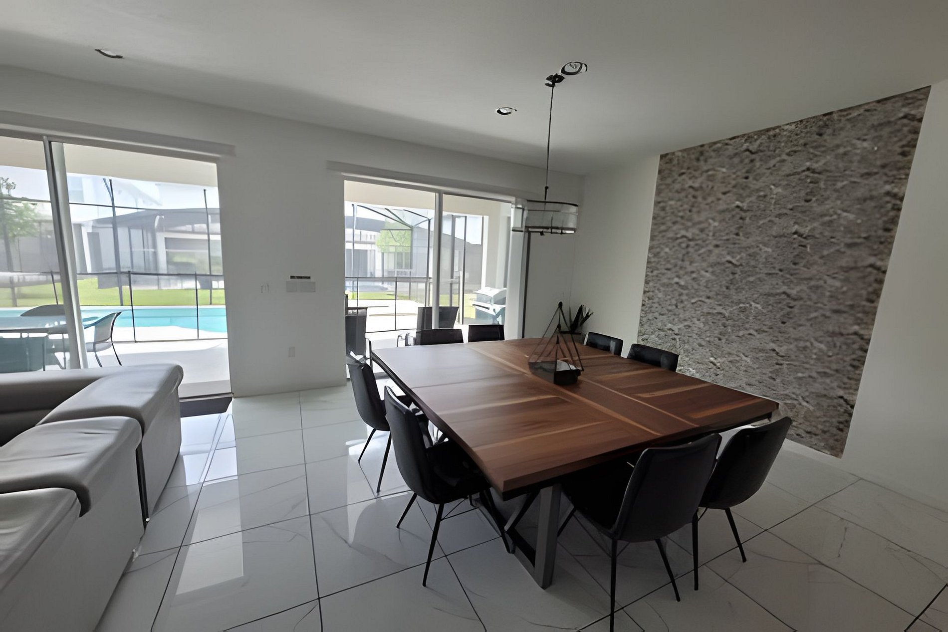 Beautiful open floor plan: designer furnished living, dining and kitchen for your enjoyment. Fully equipped kitchen and breakfast bar with 04 stools. Beautiful lighting, stainless steel appliances and granite counter tops. 2 Refigerators! Spacious and luxuriously furnished great room (2x sectional for 06 people each, & large flat screen TV) and dining area (seating for 08), perfect for you and your guests to enjoy a good meal Private backyard w Pool & Spa, Outdoor seating: pool is heated (additional fee) and available for you and your family year around to take a dip, relax!
