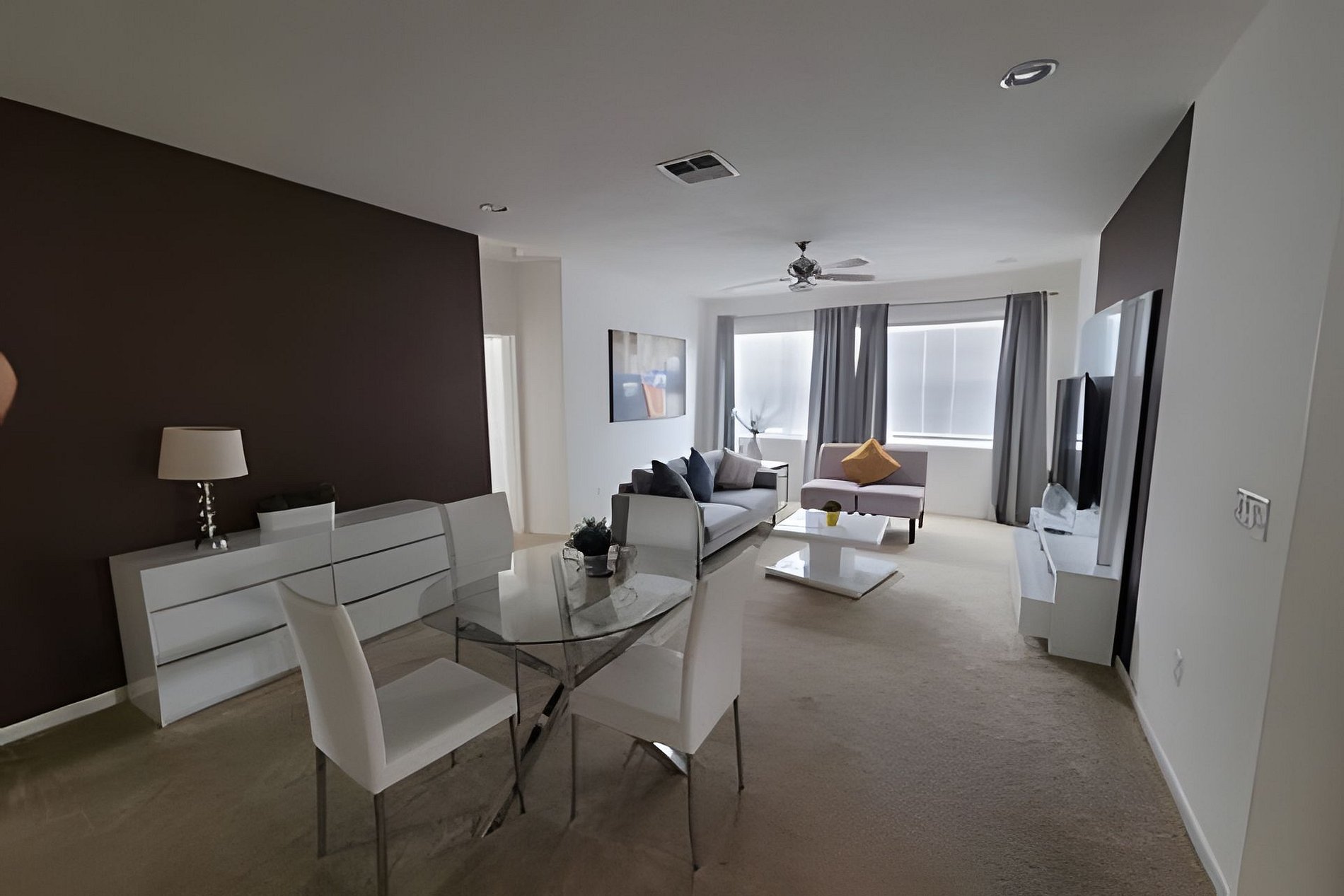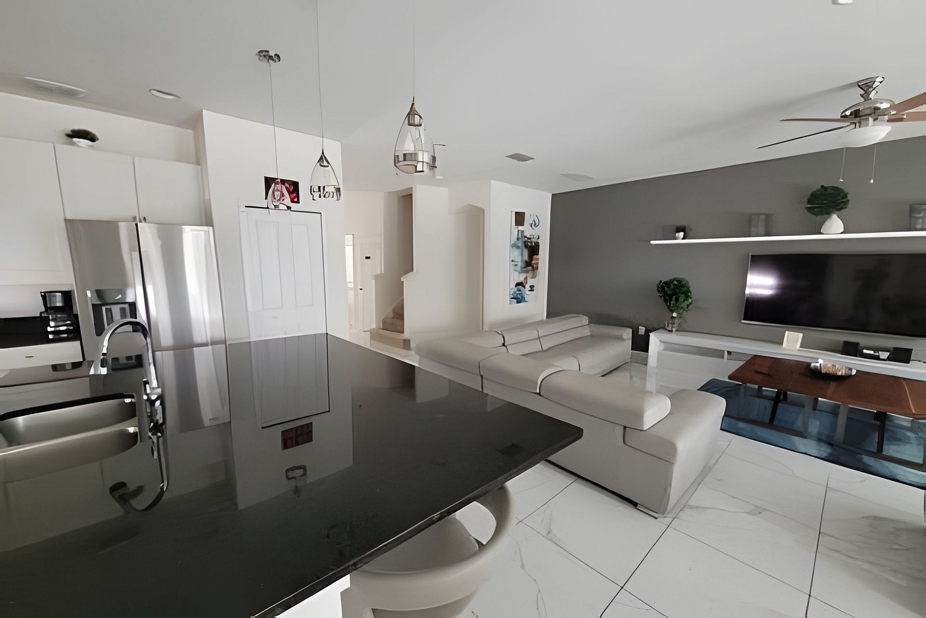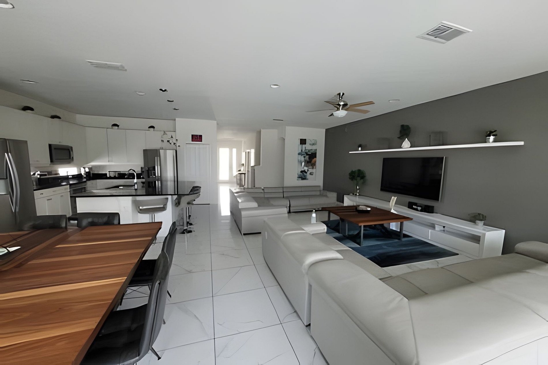 Beautiful open floor plan: designer furnished living, dining and kitchen for your enjoyment. Fully equipped kitchen and breakfast bar with 04 stools. Beautiful lighting, stainless steel appliances and granite counter tops. 2 Refigerators! Spacious and luxuriously furnished great room (2x sectional for 06 people each, & large flat screen TV) and dining area (seating for 08), perfect for you and your guests to enjoy a good meal Private backyard w Pool & Spa, Outdoor seating: pool is heated (additional fee) and available for you and your family year around to take a dip, relax!