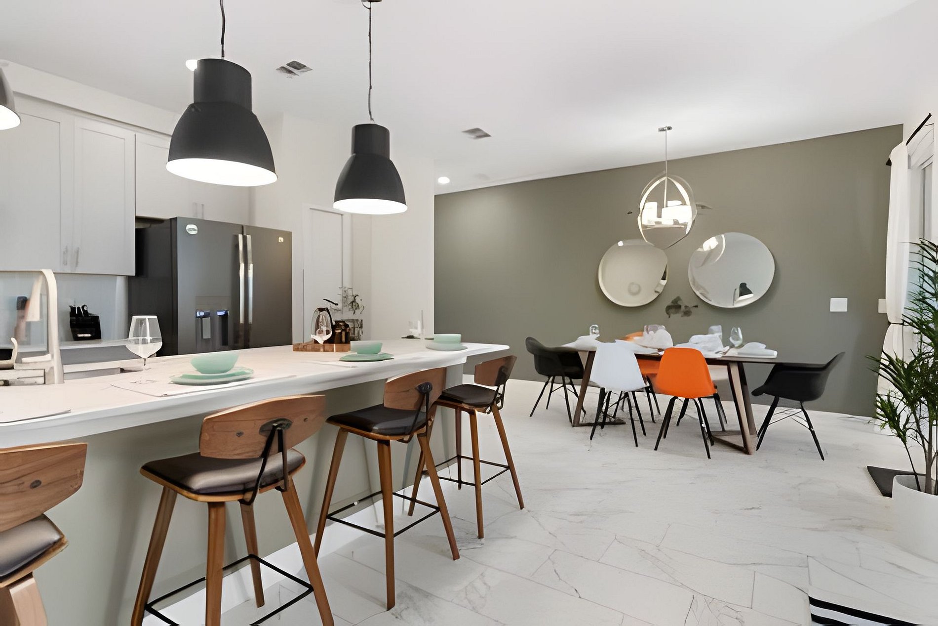 Tiles on the living room, kitchen, dining area. Carpets in all 4 bedrooms, staircase and corridor. Pool Heater is also extra for an additional fee ($35/day plus taxes). Please, inquire before or while in the property. The Retreat at Champions Gate boasts world class amenities featuring The Oasis Clubhouse: Resort Style Pool with Water Slide and Cabanas , Lazy River, Tiki Bar, Fitness Center , Movie Theater, Game Room , Play Ground, Volleyball Courts , Public 18-hole golf course with a driving range and putting green , Golf clubhouse and pro shop , asphalt tennis courts along with a tennis clubhouse .