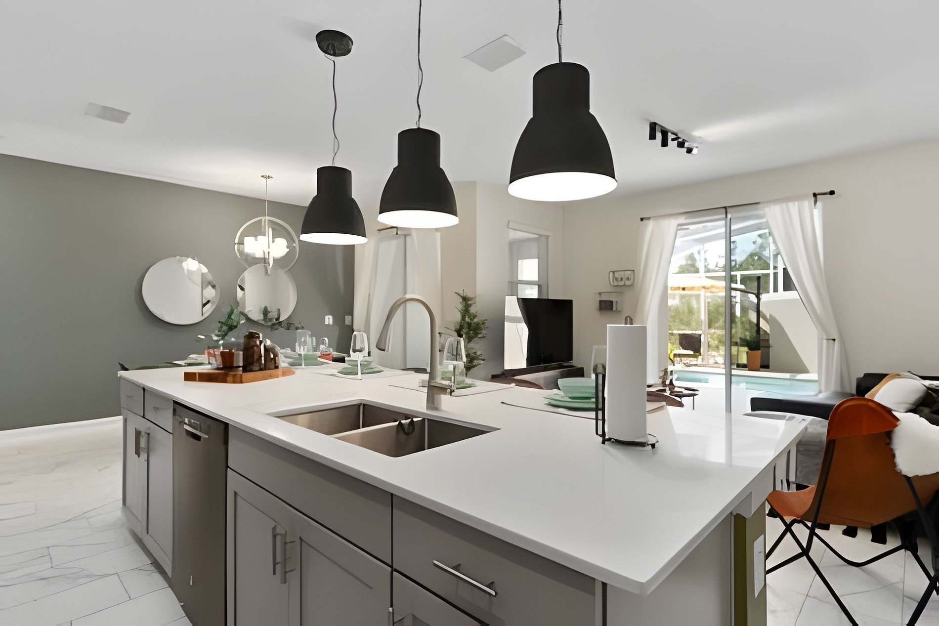 TOWNHOUSE WITH PRIVATE SCREENED POOL, PROFESSIONALLY DECORATED! House sleeps 10 plus a baby in a pack & play. Stunning 4 Bedrooms, 3 Bath private screened pool townhouse in the sought after Champions Gate Resort. Professionally decorated, 4 Flat TV screen, dining table for 06, patio furniture, free wi-fi, cable channels and much more.