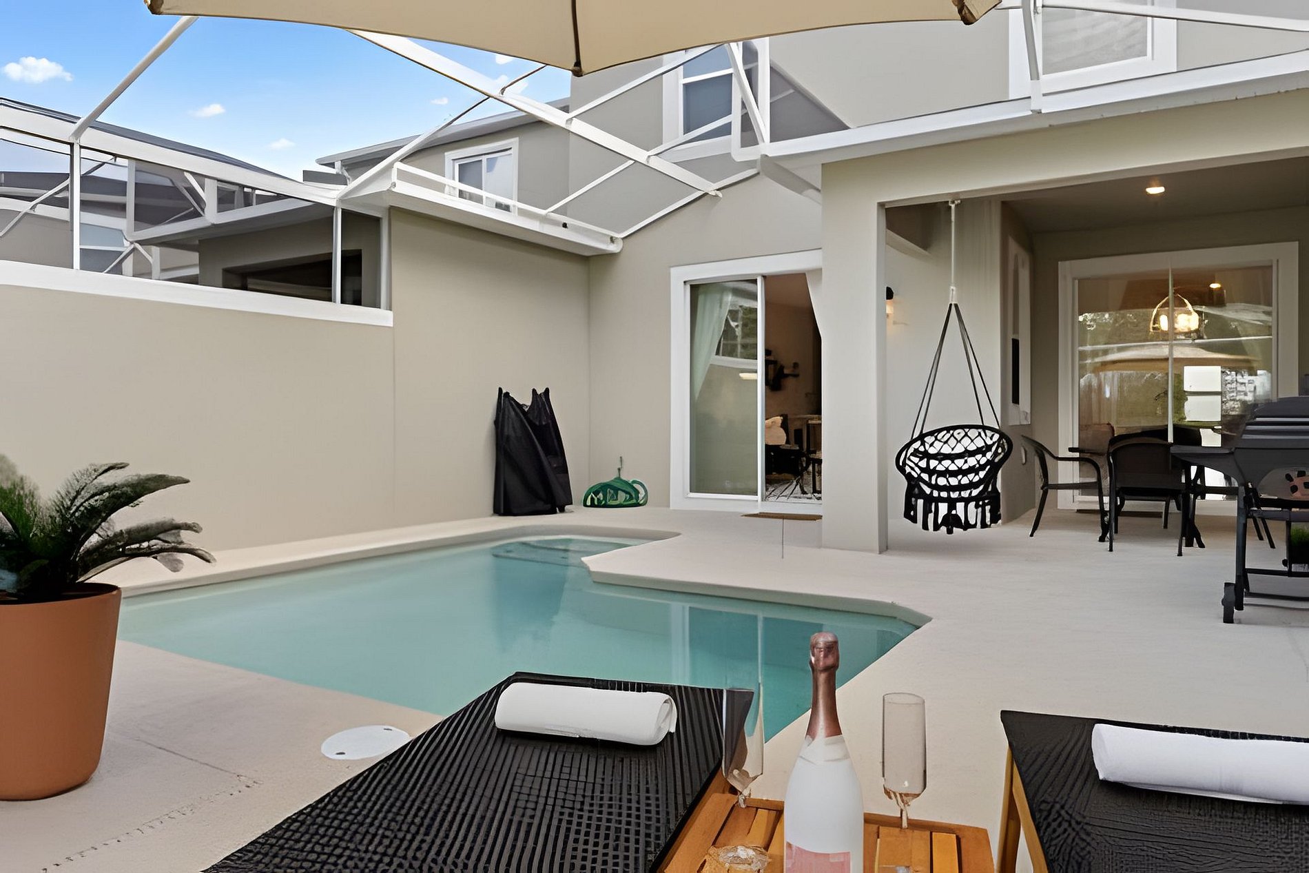TOWNHOUSE WITH PRIVATE SCREENED POOL, PROFESSIONALLY DECORATED! House sleeps 10 plus a baby in a pack & play. Stunning 4 Bedrooms, 3 Bath private screened pool townhouse in the sought after Champions Gate Resort. Professionally decorated, 4 Flat TV screen, dining table for 06, patio furniture, free wi-fi, cable channels and much more.