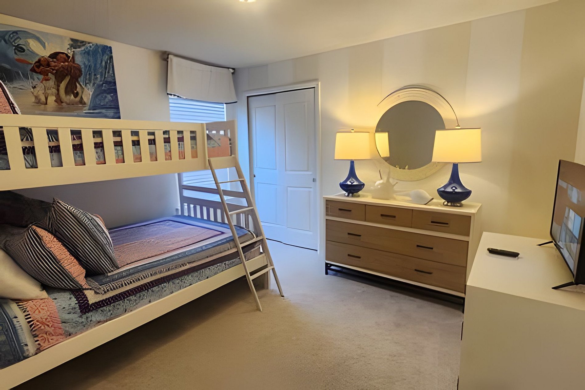 Bedroom 3: Bunk Bed with a Full Bed below and a twin above, Roku TV, Dresser, Moana Themed (Upstairs)