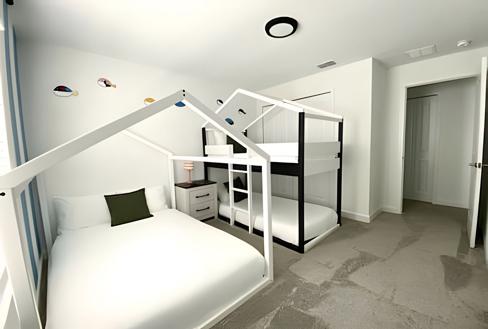 1 bedroom featuring a full bed and a twin-over-twin bunk bed—great for kids or teens.