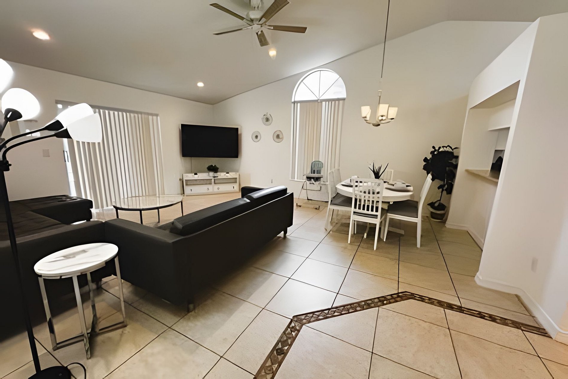 With almost 1500sqft of air-conditioned tiled living areas, fast Wi-Fi, a private screened pool (Not Heated), covered lanai and double garage. This rental property offers everything and more for guests visiting the area. Unlike many Florida villas, the garden and pool area are fully fenced for extra privacy. This ensures that you are not overlooked when using the screened private pool. Indian Wells is the most central of the villa communities, located within Lake Buena Vista and all but borders Walt Disney World. With such a prime location and run by very experienced owners, this Florida villa makes the perfect base when visiting Orlando and the Disney area. The spacious air-conditioned vacation villa has a vaulted ceiling, is very homely, with tiled living areas. Houe is fully furnished. With a big television (streaming only: Free Live TV Channels, or you can stream your own subscriptions such as Netflix, Hulu, Prime, etc...) in the Living Room.