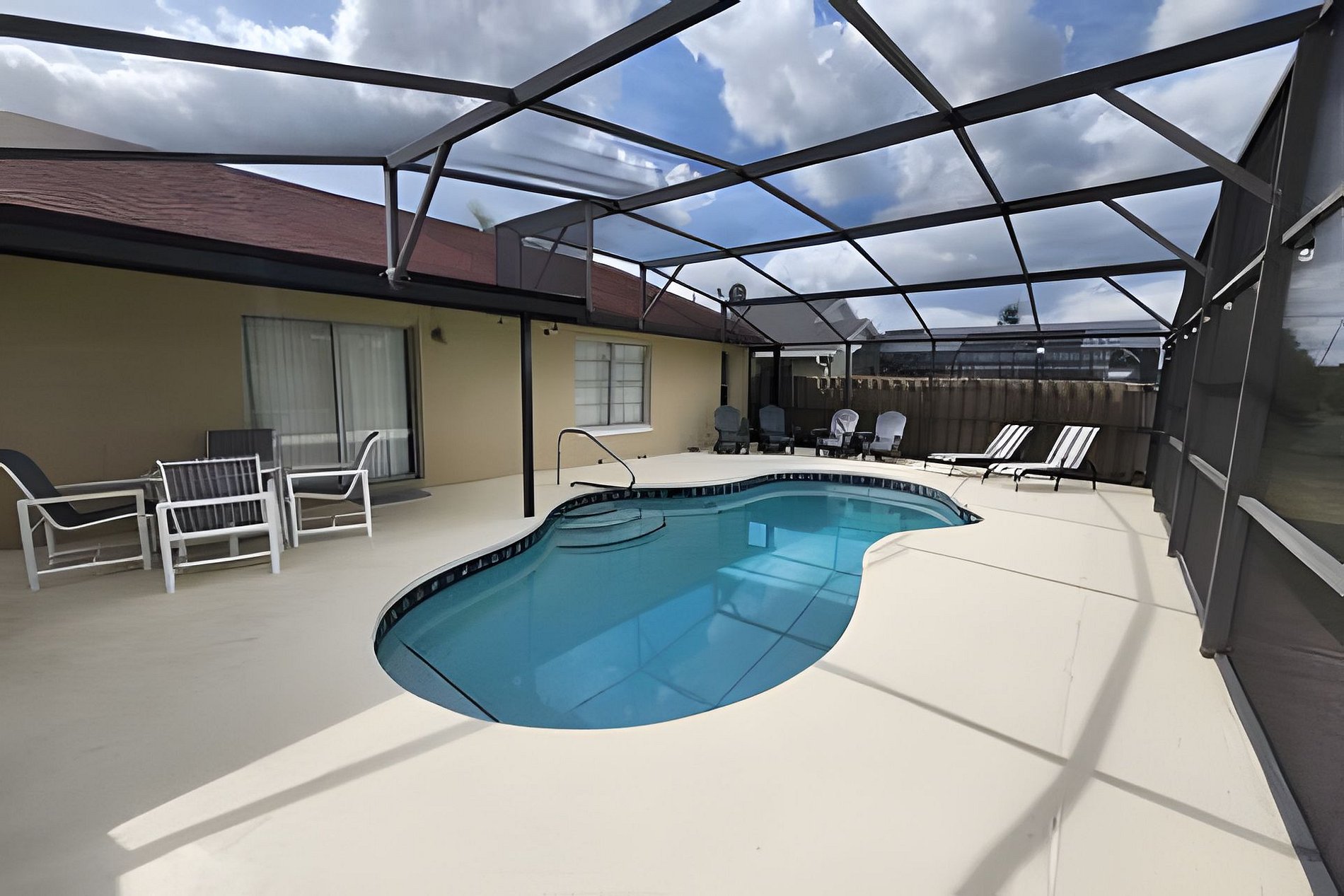 LAKE VIEW POOL HOME CENTRALLY LOCATED, GAMES, NEAR DISNEY, MALLS, SUPERMARKETS AND RESTAURANTS<br><br> Set in a peaceful location in the Indian Wells community centered located in Kissimmee our villa: Elegant is a 3 bedroom, 2 bathroom single story vacation Florida villa. House sleeps 07.<br> With almost 1500sqft of air-conditioned tiled living areas, fast Wi-Fi, a private screened pool (Not Heated), covered lanai.