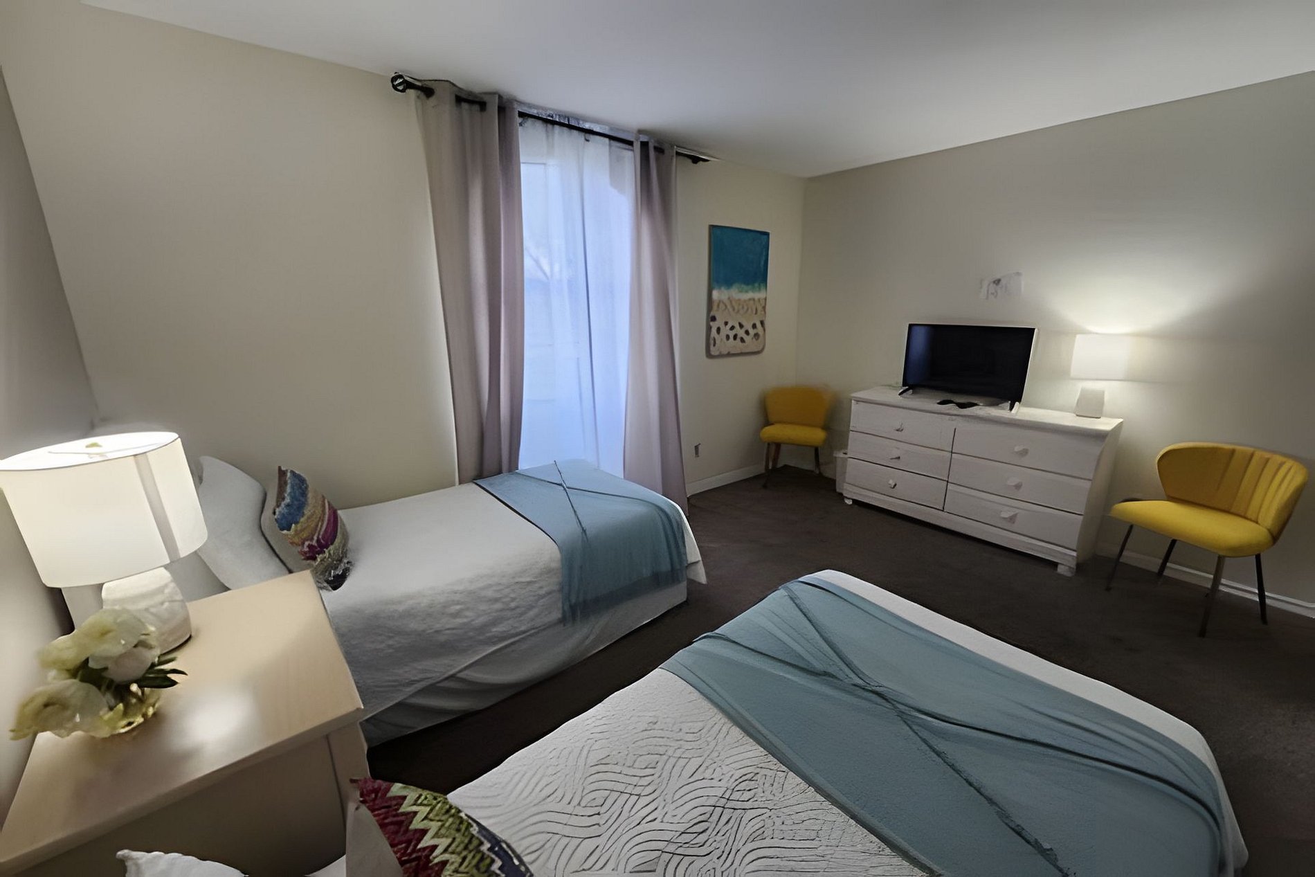 There is also a second bedroom with queen-sized bed and television (Roku TV, Streaming only), along with a third bedroom with 02 twin beds and television (Roku TV, Streaming only). Storage for clothes in closets and cabinets. Located conveniently for these bedrooms is the second bathroom, with a bathtube/shower combo, sink, WC and additional hairdryer. For infants, pack & play and a high-chair is provided.