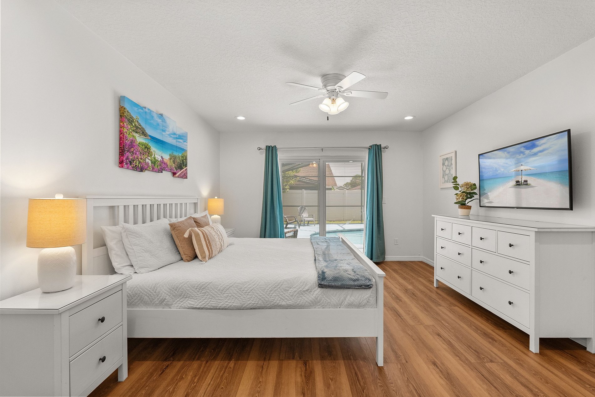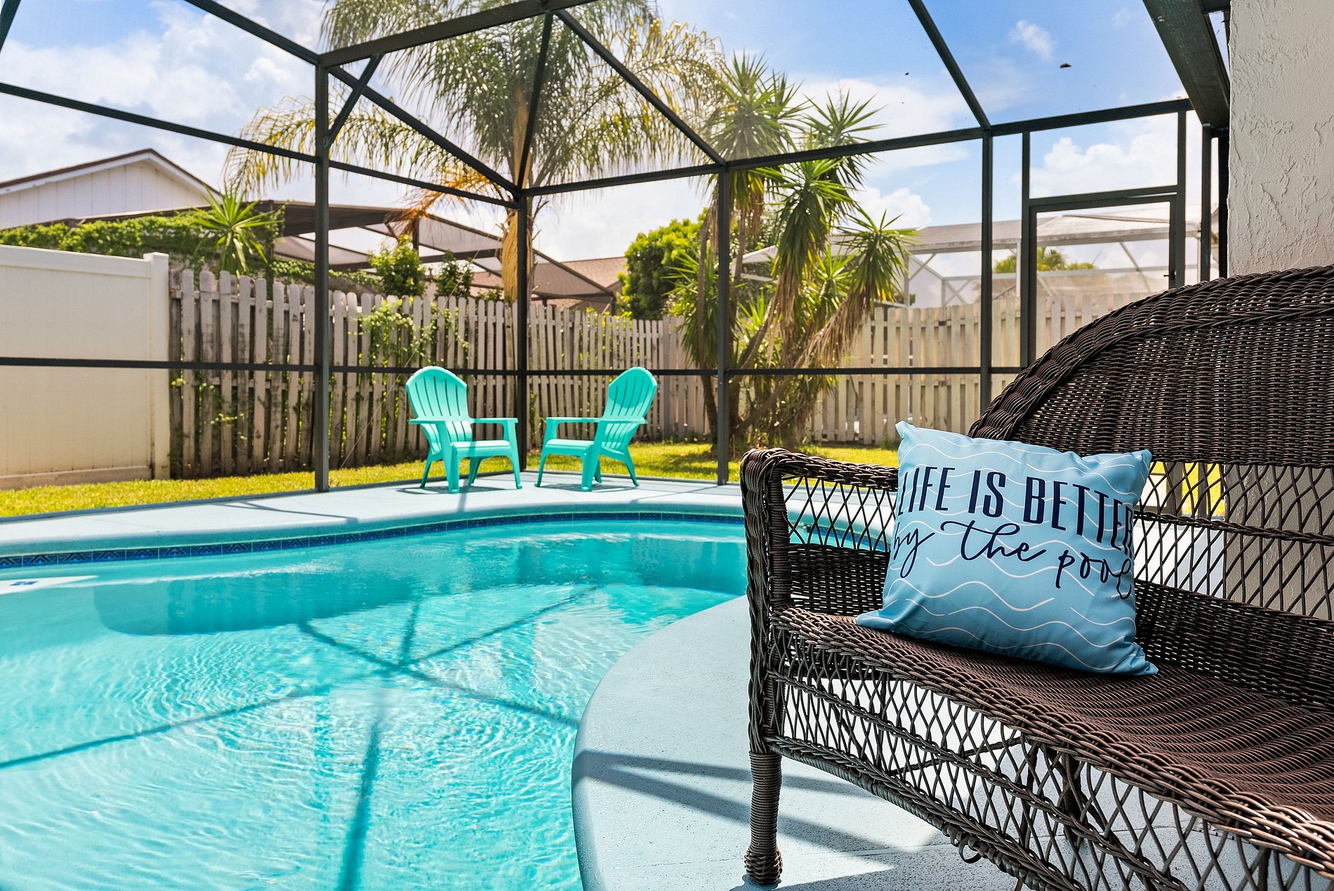 Enjoy nearly 1,500 sqft of air-conditioned comfort in our spacious single-story villa, accommodating up to 8 guests. This 3-bedroom, 2-bathroom home features a private screened pool, offering you a secluded oasis to relax under the Florida sun. We’ve added a fun and relaxing game room for our guests of all ages! Whether you are looking to unwind after a day of exploring or to keep the kids entertained, our game room has something for everyone.