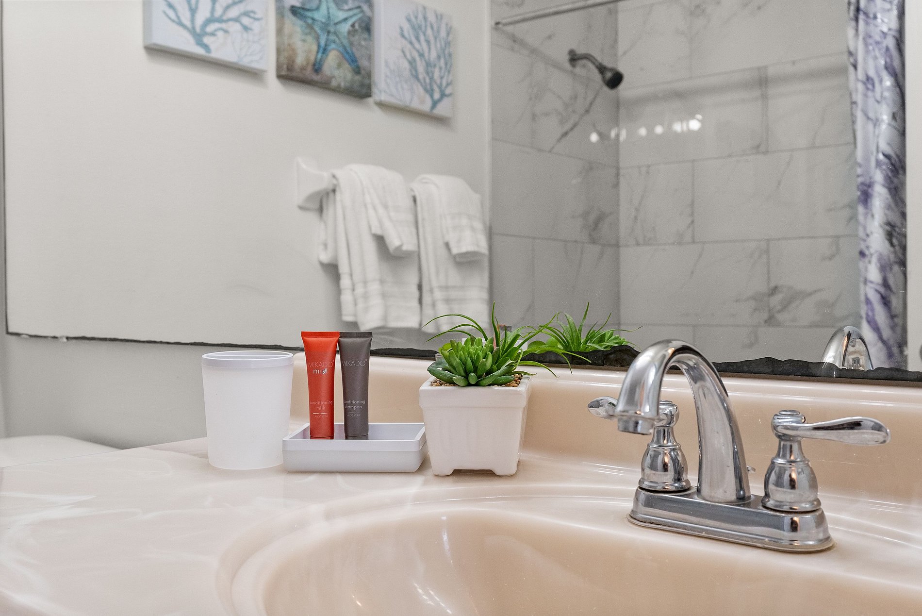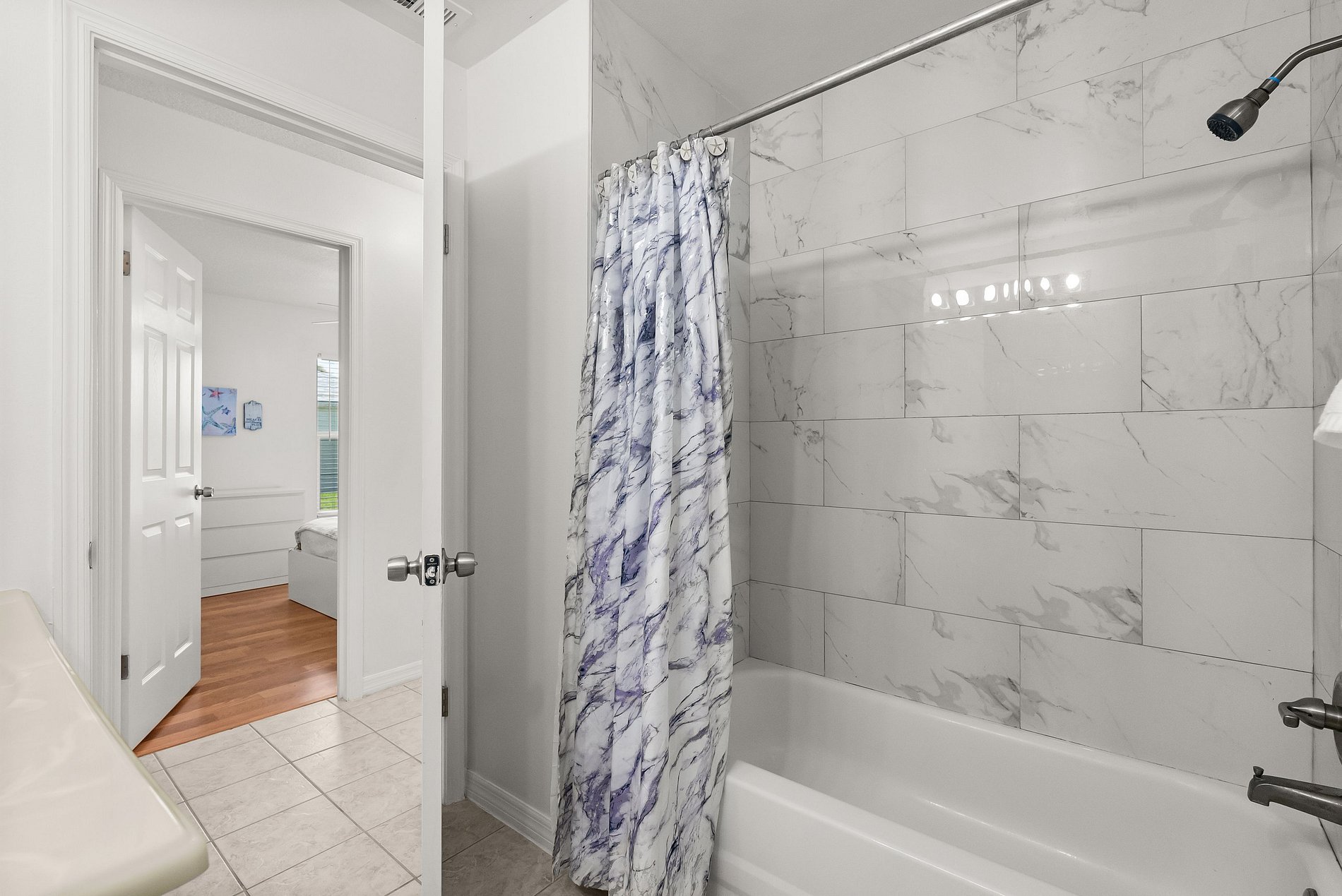 -A second bathroom, equipped with a bathtub/shower combo, is conveniently located for easy access from the secondary bedrooms.