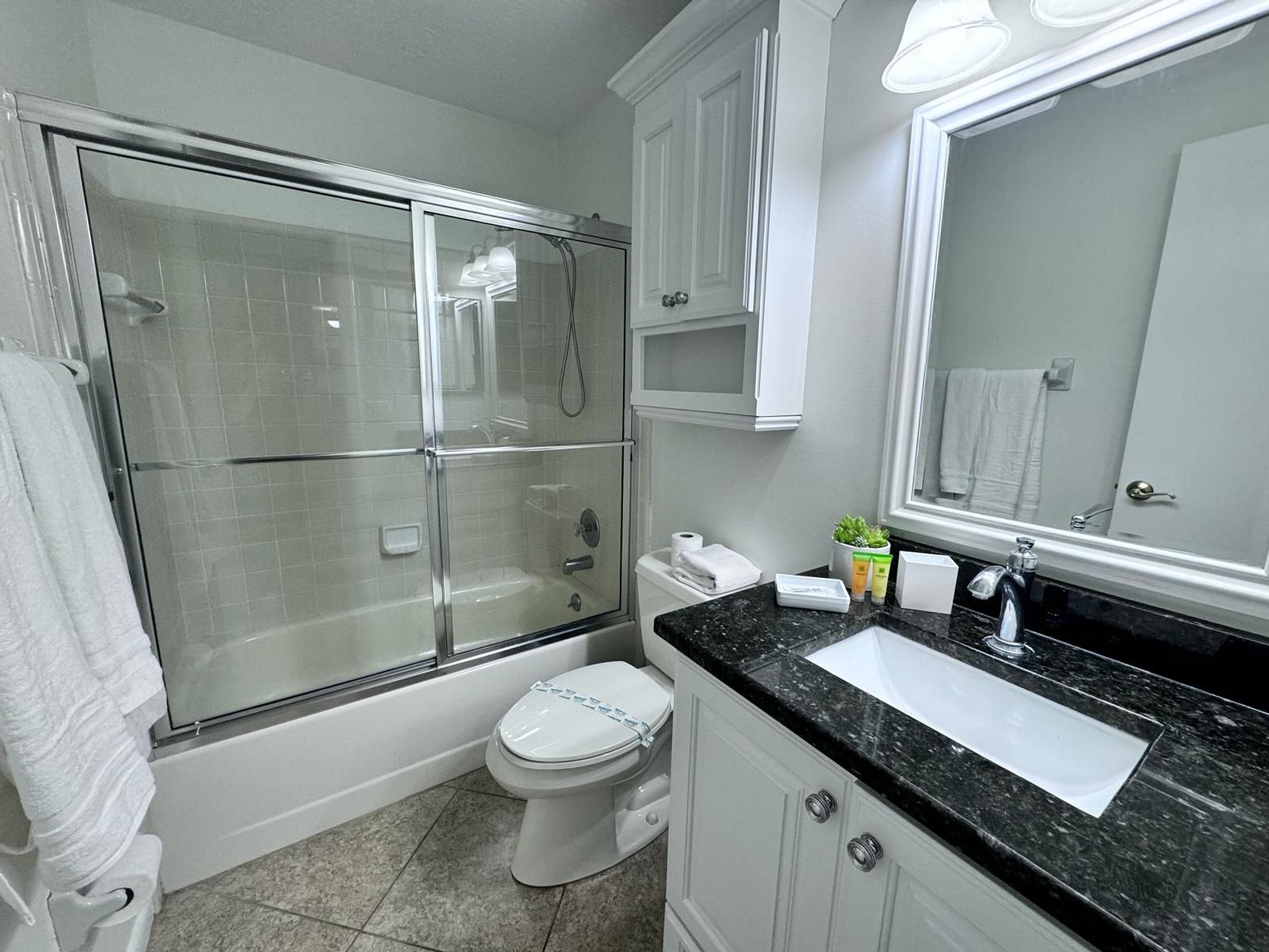 The elegantly furnished master bedroom overlooks the pool and has a huge king size bed, lamps, and television (Smart TV : Streaming only including live TV Channels). There is a large walk-in closet for hanging clothes. The en-suite bathroom contains a walk-in shower, WC,sink, hairdryer and space for those essential holiday lotions and toiletries. There is also a second bedroom with queen-sized bed and television (Smart TV, Streaming only), along with a third bedroom with 02 twin beds and television (Smart TV, Streaming only). Storage for clothes in closets and cabinets. Located conveniently for these bedrooms is the second bathroom, with a bathtube/shower combo, sink, WC and additional hairdryer. For infants, pack & play and a high-chair is provided.