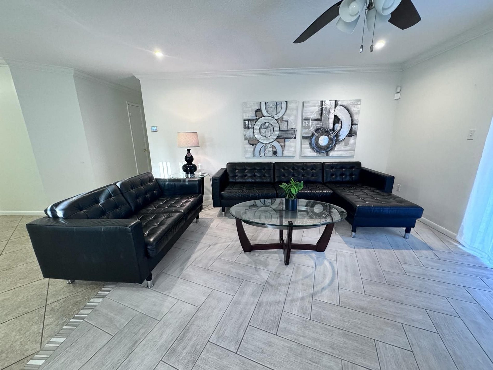 The spacious air-conditioned vacation villa has a vaulted ceiling, is very homely, with tiled living areas. Houe is fully furnished. With a big television (streaming only: Free Live TV Channels, or you can stream your own subscriptions such as Netflix, Hulu, Prime, etc...) in the Living Room.