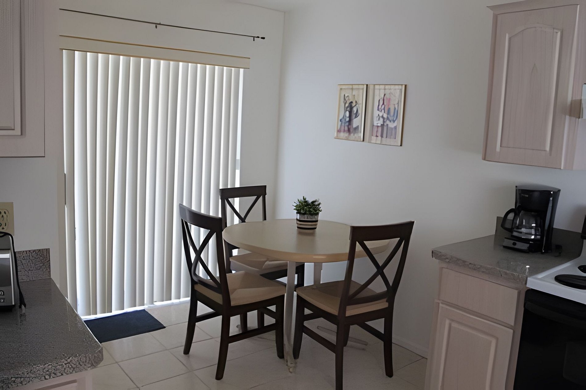 Whether catering for the family or a quiet meal for two, the dining area seats six and provides a relaxed and enjoyable environment. There is also a nook table for snacks and breakfast. Access the pool via patio doors. The fully-equipped kitchen includes an American-sized refrigerator (with integrated ice maker), microwave, dishwasher, coffee maker, toaster, blender and electric kettle. Cutlery, pans, and glasses are supplied. Bath and pool towels are provided. There is also a washing machine, tumble dryer available for your stay.