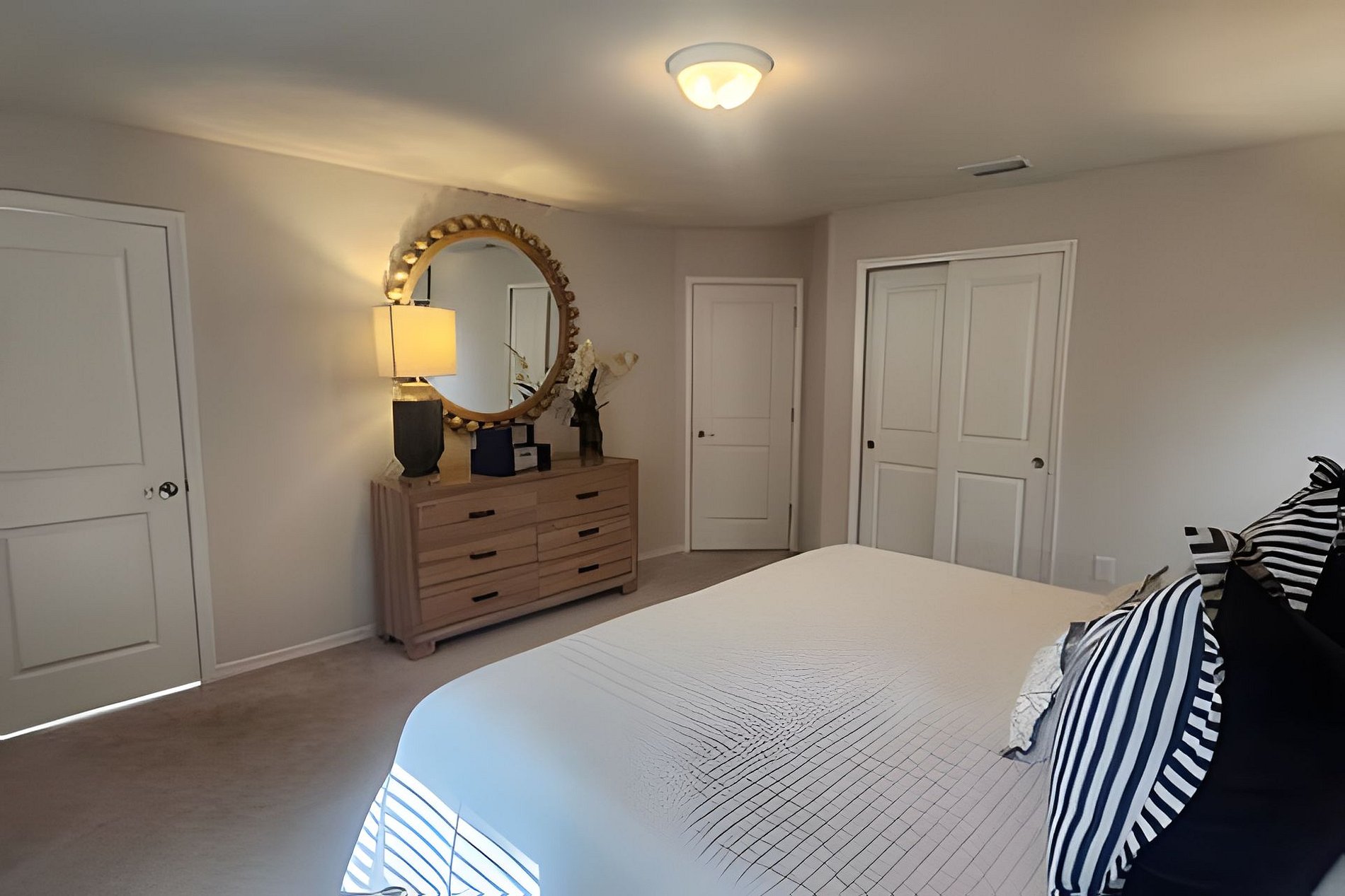 Bedroom 1: 1 King Bed, Roku TV, Dresser, Ensuite wit bathtub, double vanities, walk-in shower. This bathroom give you access to the pool area (Downstairs)
