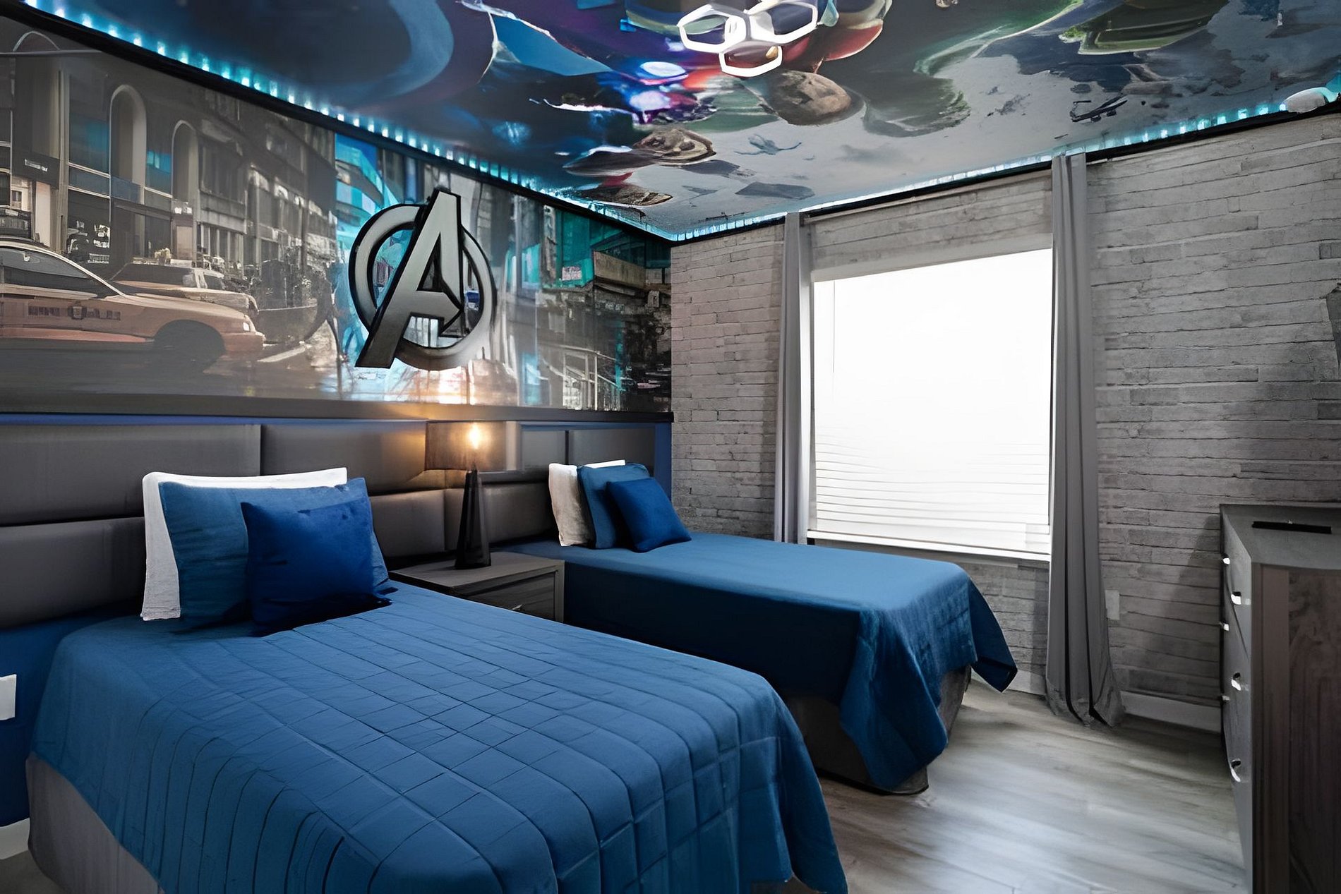 Bedroom 3: 02 Twin Beds, TV, Jack & Jill with walk-in shower. Avengers themed