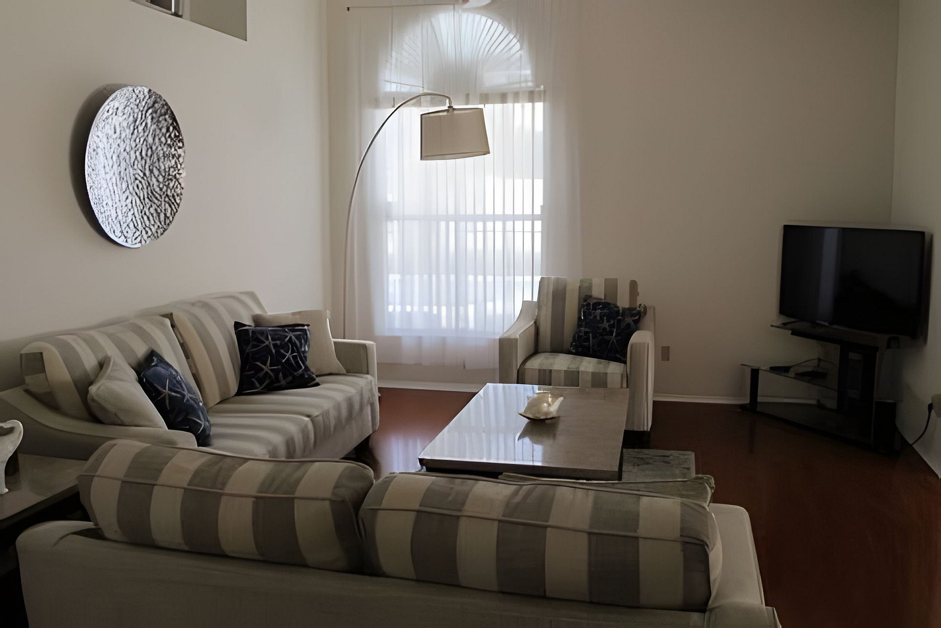 The spacious air-conditioned vacation villa has a vaulted ceiling, is very homely, with tiled living areas and carpet in the bedrooms. Houe is fully furnished. With a big television (streaming only: Free Live TV Channels, Peacock with free movies or you can stream your own subscriptions such as Netflix, Hulu, Prime, etc...) in the Living Room.
